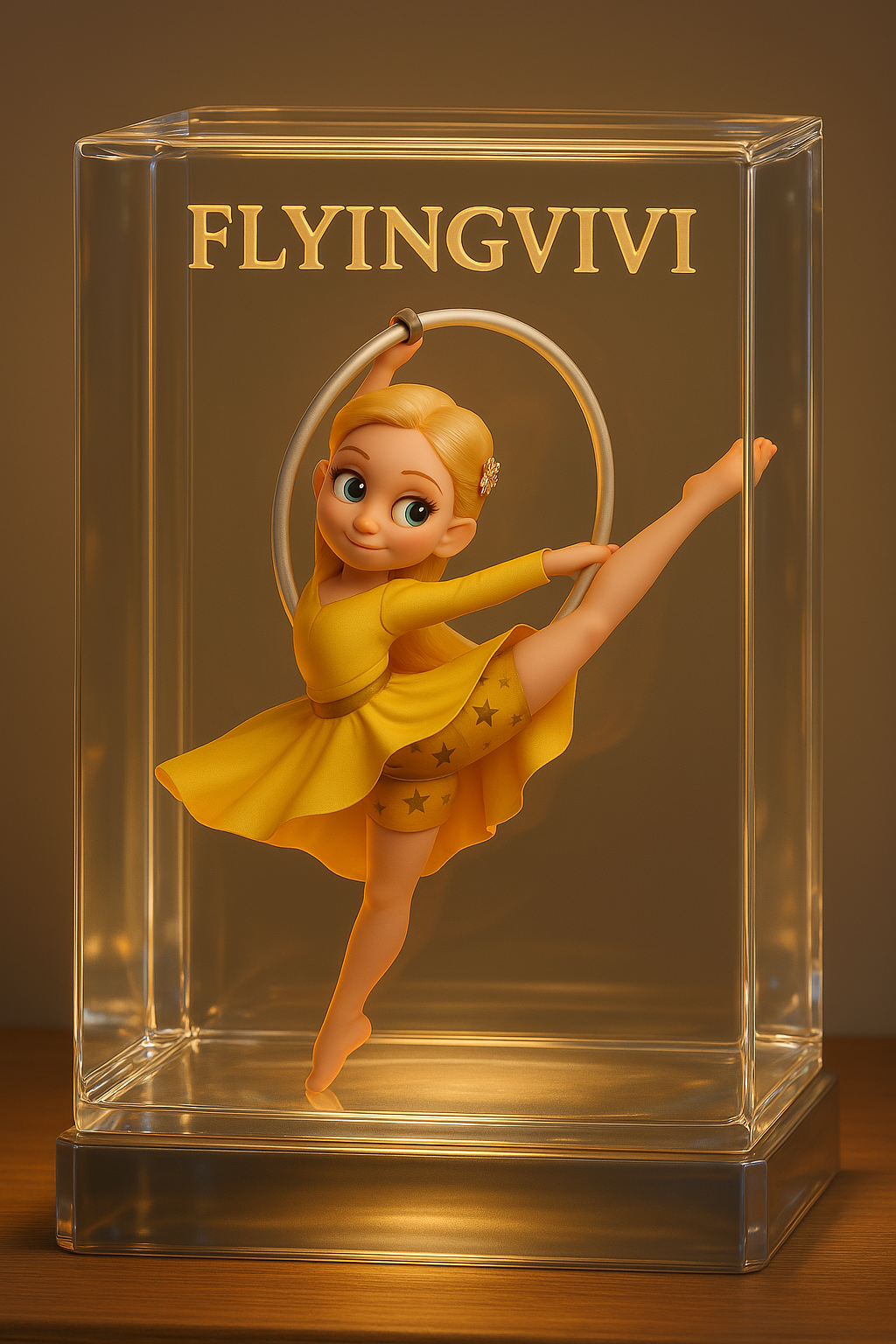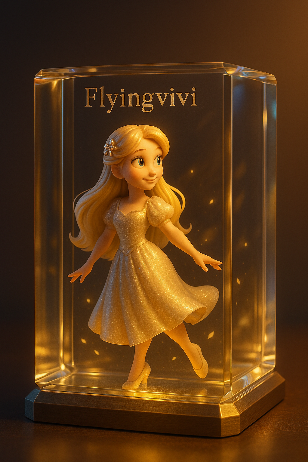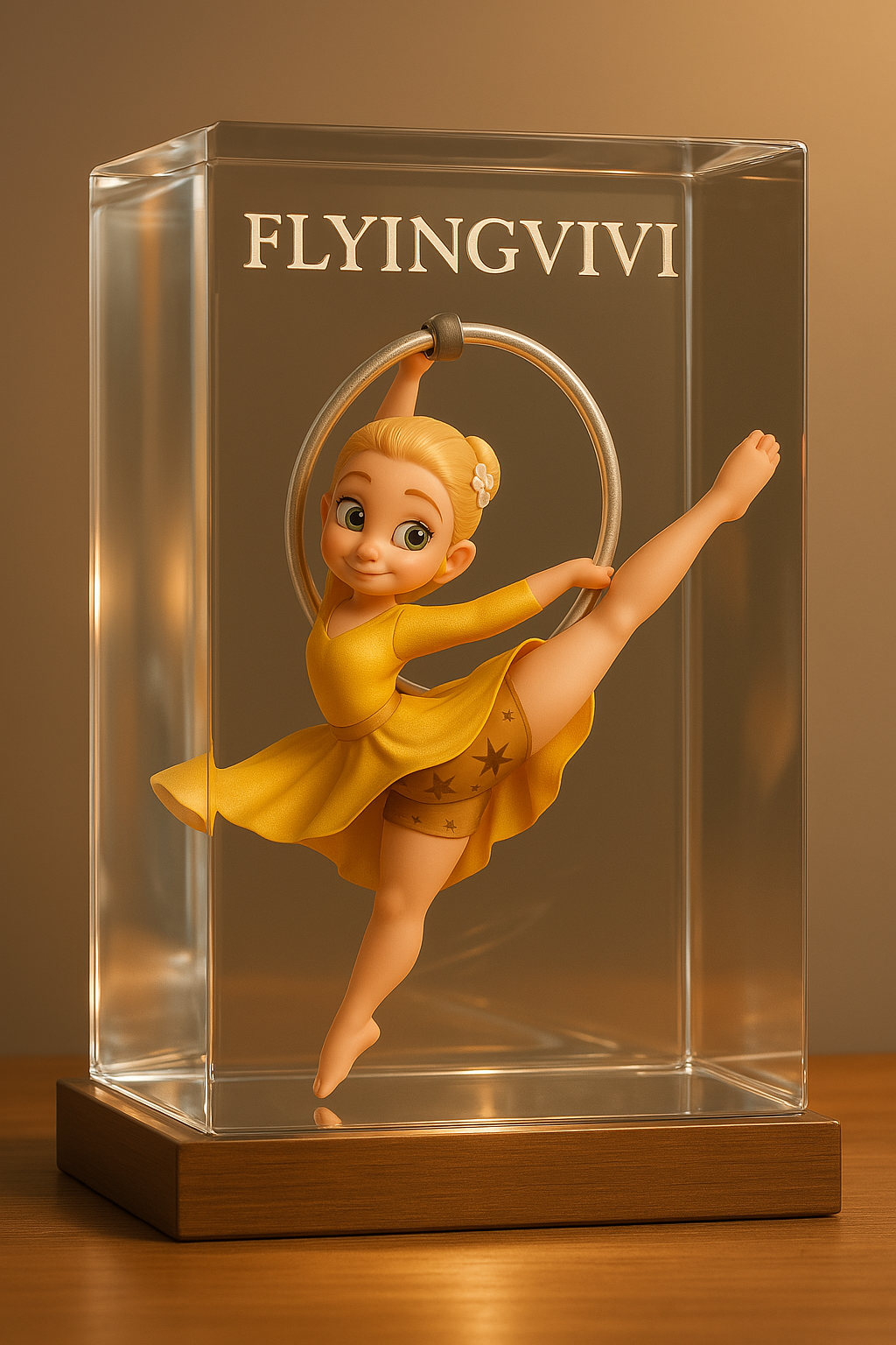 Flyingvivi (원하는 이름 넣어주시면 되요) 라는 문구가 새겨진 크리스탈 장식 안에 예술 조형물.